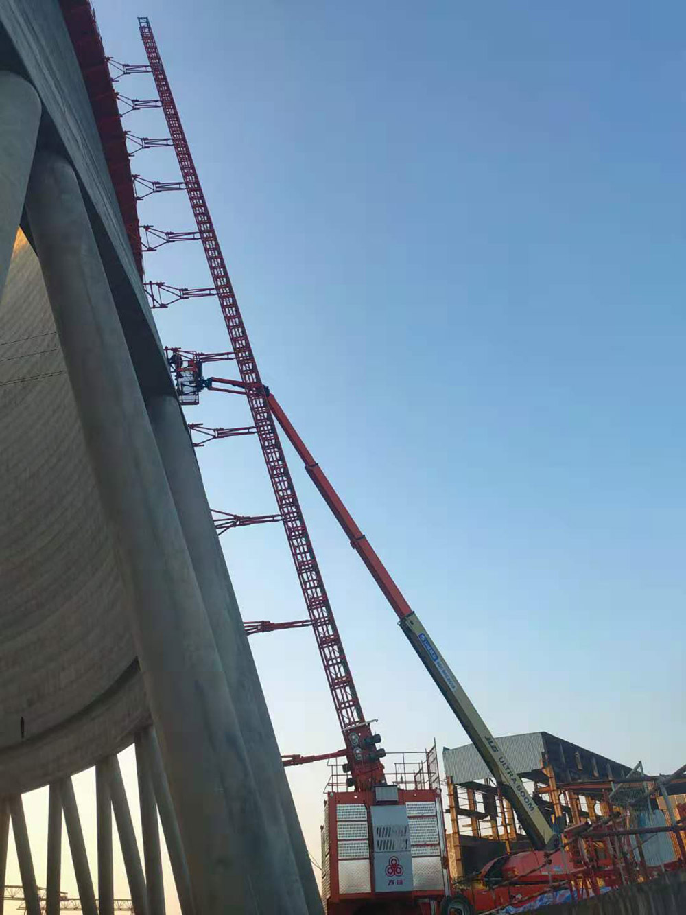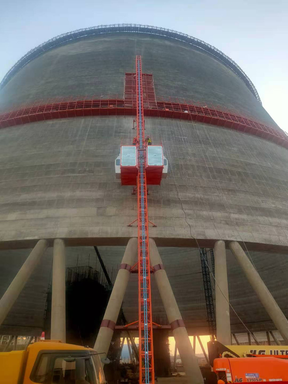 1.原冷卻塔外側傾斜角度超出施工升降機允許的最大角度(即15度);